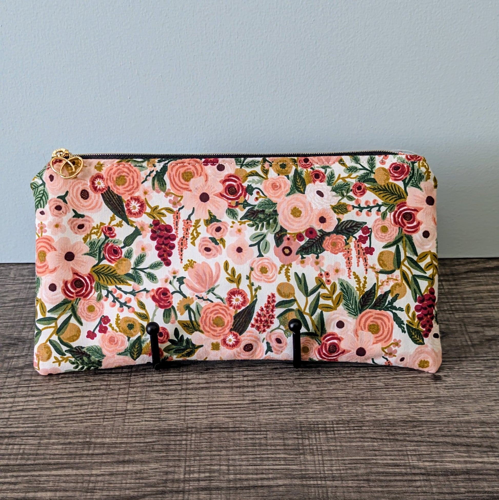 This little pink floral pouch is perfect for all your needs. This flower print small zipper pouch makes a nice money and coin purse, and it is the right size to hold debit, credit and gift cards. It also makes a great little makeup pouch, as it can easily fit lipstick, mascara, and small compacts.