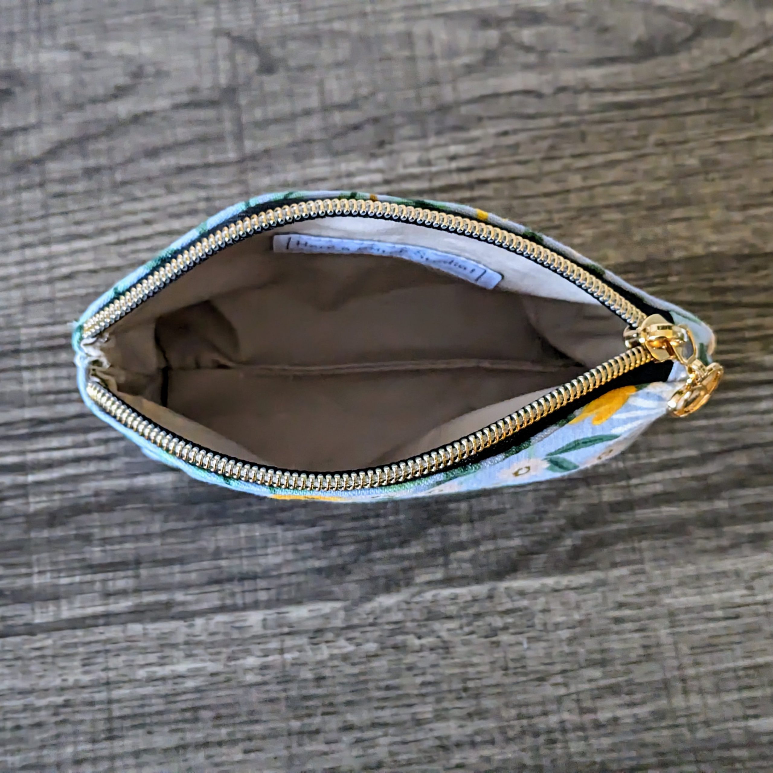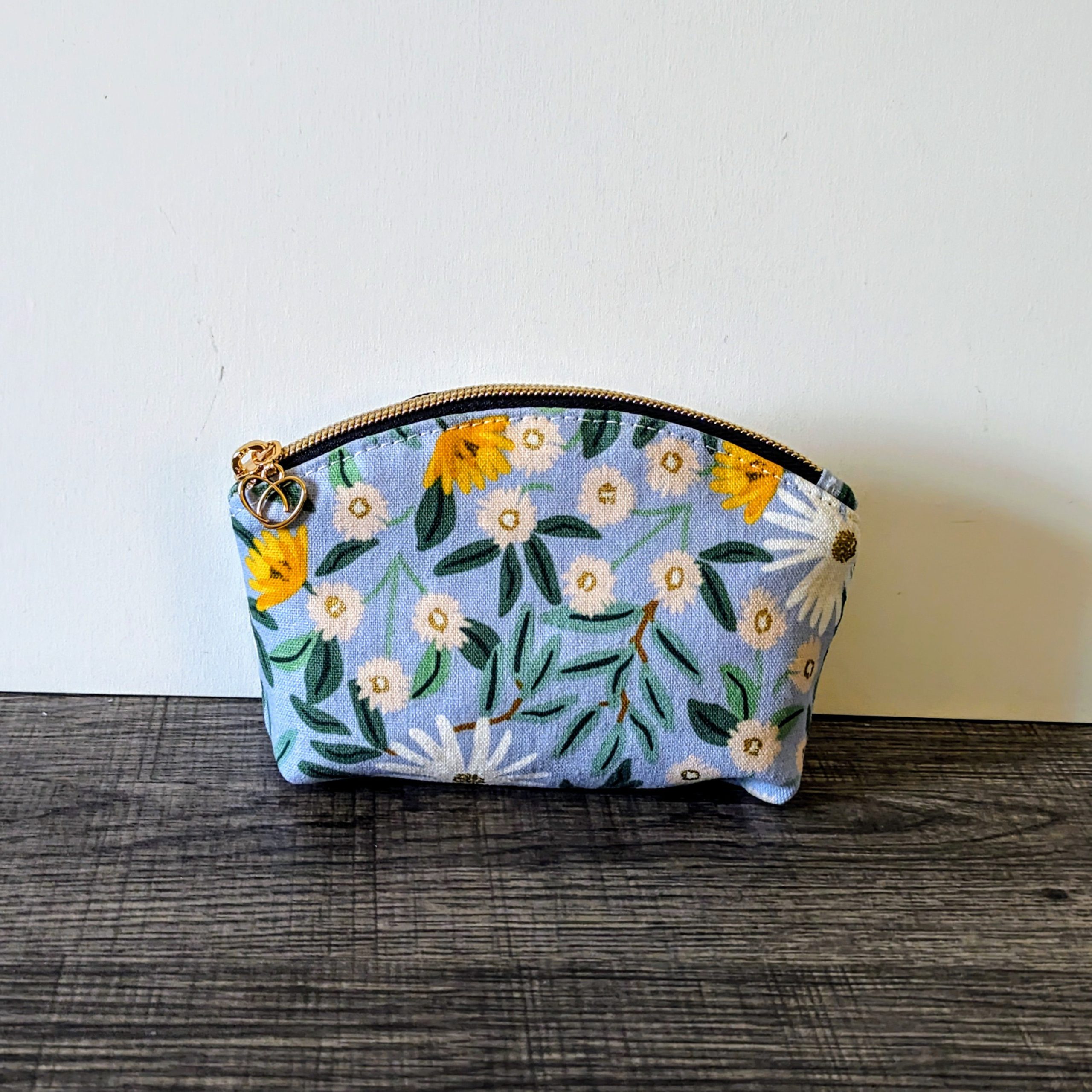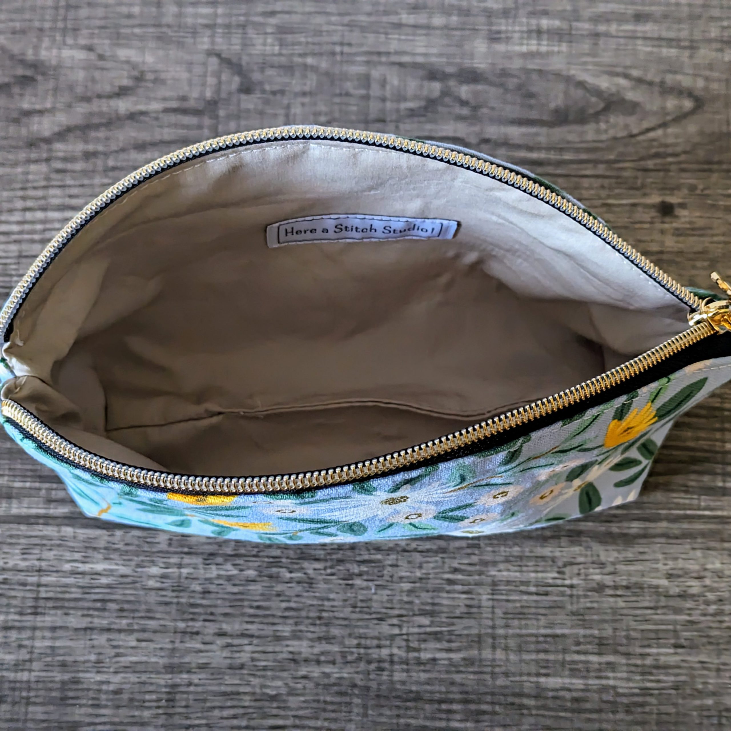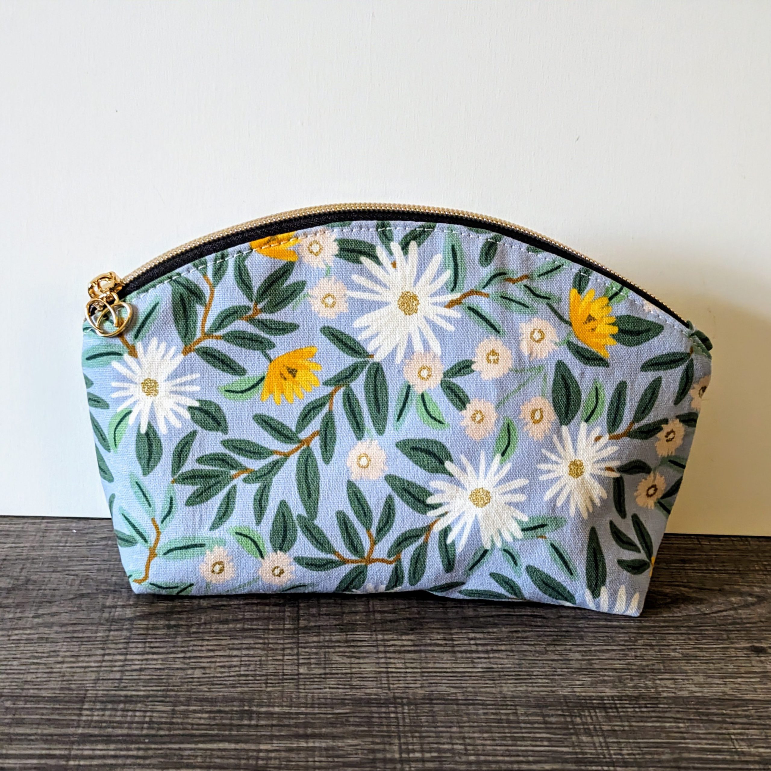 This handmade floral canvas zipper pouch makes the perfect toiletry and cosmetic bag. Great toiletry bag to use when travelling. This cosmetic bag comes in two sizes, large and small, to accommodate your personal care storage needs. This pouch is also makes a great notions bag or pencil case.